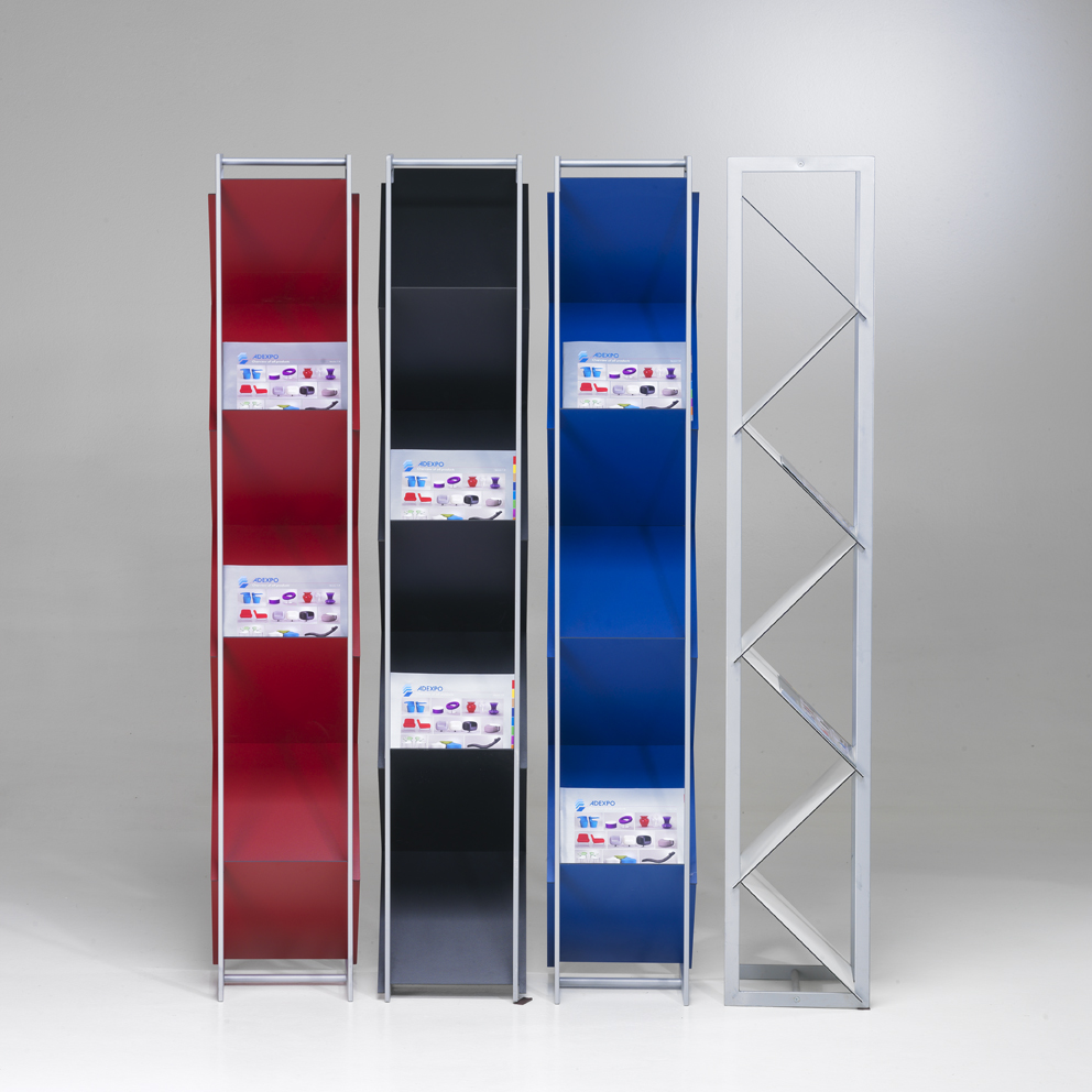 DR434De folderstandaard SPECTRO zwart is een stijlvolle en functionele oplossing voor het presenteren van uw informatiematerialen op beurzen en evenementen. Met zijn zwarte opbergvakken biedt hij voldoende ruimte voor brochures, flyers en catalogi en geeft hij uw beursstand een professionele en opgeruimde uitstraling. Het robuuste design zorgt voor stabiliteit en duurzaamheid. Dankzij zijn compacte bouw is de folderstandaard gemakkelijk te vervoeren en flexibel inzetbaar. Huur de folderstandaard SPECTRO om uw promotiemateriaal effectief en aantrekkelijk te presenteren.