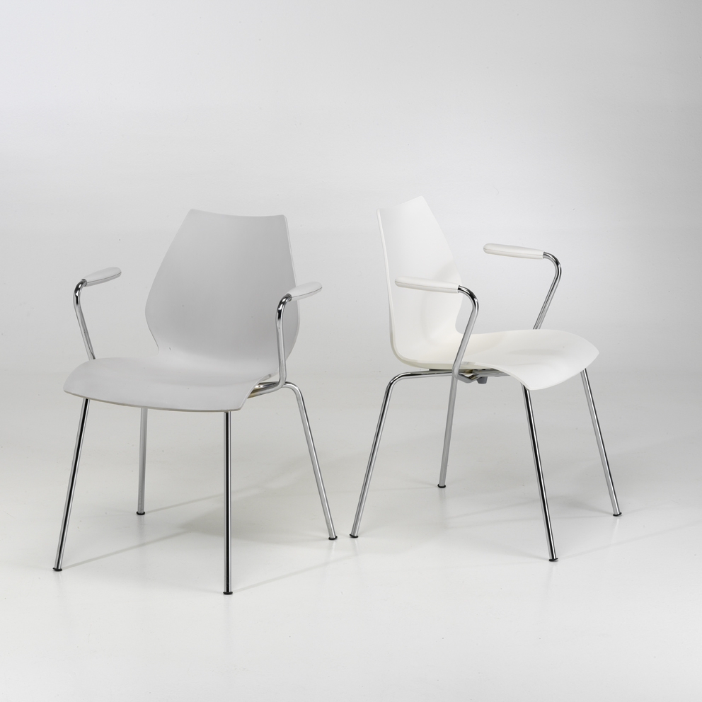 S104De lichtgrijze MAUI stoel met chromen onderstel van Kartell biedt een stijlvolle en comfortabele zitoplossing. Met zijn strakke, minimalistische ontwerp past deze stoel perfect in moderne interieurs. Het ergonomische ontwerp zorgt voor langdurig zitcomfort, terwijl het chromen onderstel een subtiel vleugje elegantie toevoegt. Ideaal voor gebruik in diverse omgevinge.